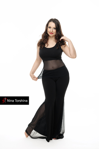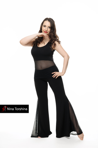 Брюки тренировочные клёш с клином из сетки